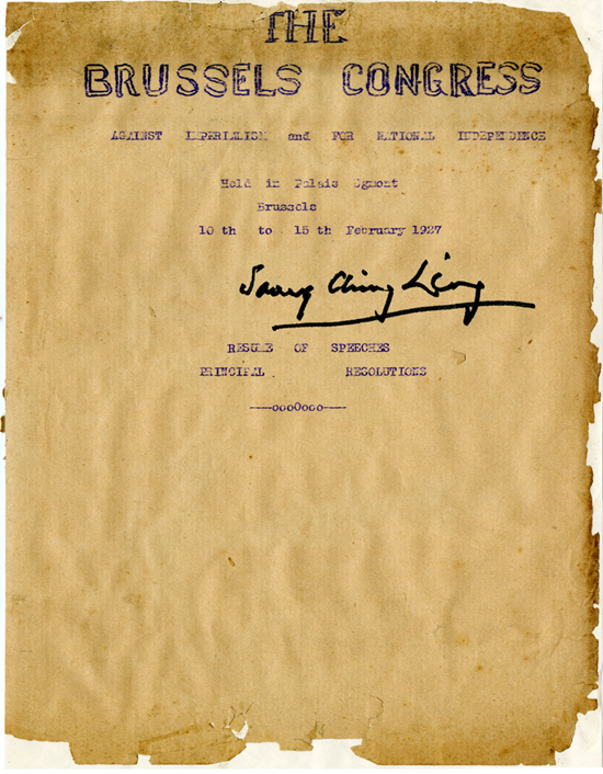 12月10日,反帝大同盟在比利时首都布鲁塞尔召开成立大会,宋庆龄被推选为名誉主席。是日,宋庆龄致电会议表示热烈祝贺,并在电文中向大会呼吁:“将世界人民组织起来,帝国主义国家从中国撤军,废除强加于中国的不平等条约,向全世界揭露中国反动政府的血腥暴行和帝国主义走狗的本质。”此后,宋庆龄逐步成为反战反法西斯运动的主要领导人,成为著名的世界和平战士、享有盛名的国际和平及进步运动的领袖。