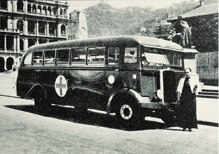 1939年,宋庆龄在英国友人约翰·桑勒克诺弗特捐赠给保卫中国同盟的大型救护车前留影
