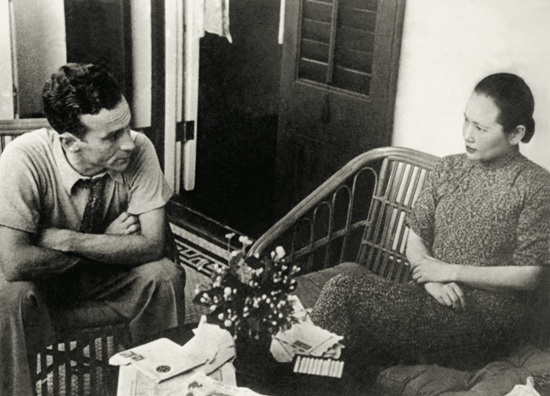 1939年,宋庆龄与埃德加·斯诺在香港讨论“工合”运动