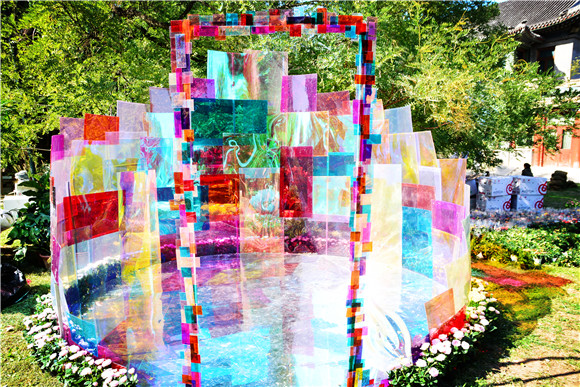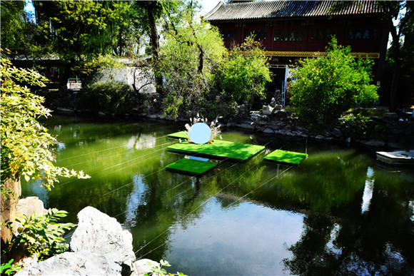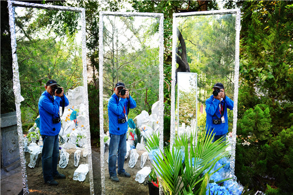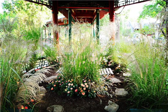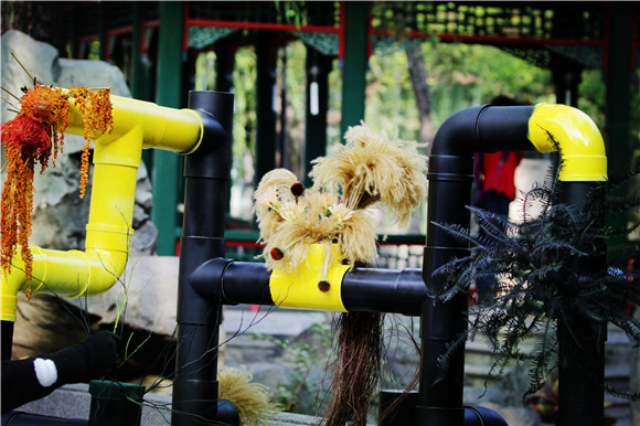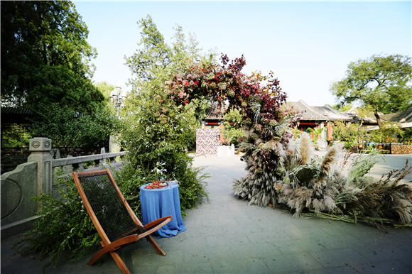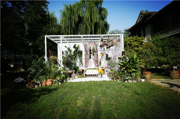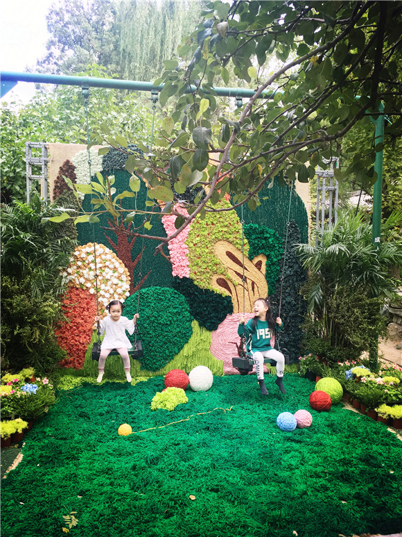 东广场宋庆龄汉白玉雕像前,主题作品《跨越》聚焦宋庆龄“唯石与菊”的意象,用花植之美歌颂、映衬宋庆龄的大美,引得观众纷纷举起相机留住美景。这座原清代醇亲王府花园,秋高气爽,山青水秀,亭台楼榭掩映于花木之间,草坪、秋千、长廊、箑亭、南楼和中院各处,《花间小筑》《流动》《万花筒》等花植设计作品令人倍感惊喜。