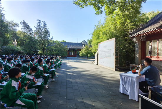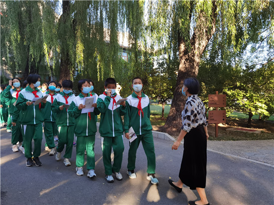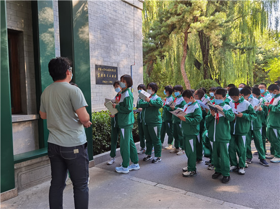 十三中分校是北京市优质初中校,也是中国宋庆龄基金会时代小先生示范校。为了支持示范校学生开展爱国主义教育,故居领导高度重视,靠前指挥,积极动员各部门员工和志愿者齐心协力做好各项组织工作,严格做好疫情防控,将教室移到露天广场,让同学们在这个具有重要历史文化意义的环境中参加庄严的仪式,聆听专题课程,学习伟人精神,树立崇高理想,受到热烈欢迎。