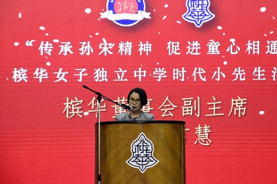 张君慧在致辞中指出,孙中山先生莅临槟岛,促使钟灵学校、福建女校等创办。她深情回顾槟华学校积淀的百年校史,介绍槟华独中是全马唯一的女子独立中学,秉承先贤理念,有教无类、因材施教,于2013年荣膺马来西亚私立高等教育部颁发五星级卓越学校奖。中国宋庆龄基金会代表团莅临槟华校园,开展时代小先生活动,将带给学校更大的启发,促进教育向更专业的方向发展。
