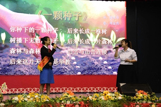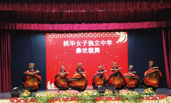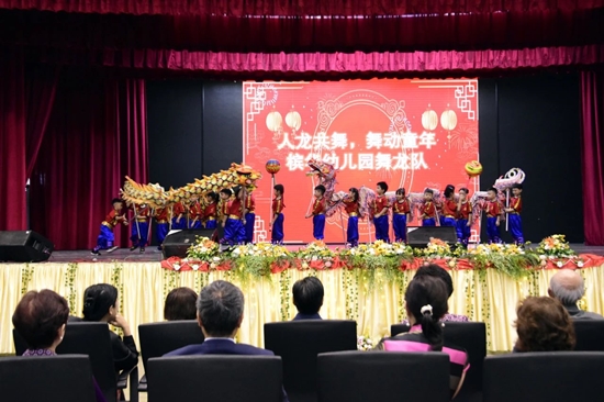 槟华四校师生进行了文艺表演。槟华幼儿园的舞龙表演灵动可爱;槟华小学合唱团演唱的《希望之光》和《Pak ketipak ketipung》悠扬清越;曾参加过时代小先生活动的陈恺汶老师与小先生张晶柔合唱《一颗种子》;槟华独中独具特色的扯铃表演铿锵有节;槟华独中舞蹈团带来的舞蹈《彝欢载舞》生动妙曼,表达了真挚的祝福。