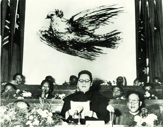 1952年10月,亚洲及太平洋区域和平会议上,作为中国代表团团长与大会执行主席,宋庆龄在开幕词中发出铿锵誓言:“我们在这里聚集一堂,要再一次充分地证明,人类是一定能创造和平的。”“只要亚洲和全世界的人民团结起来,坚决地保卫和平,我有充分的信心,相信我们一定会胜利地达到我们的目标。”彼时,会场背景墙上的巨大和平鸽图案,仿佛也因她的话语而振翅欲飞,传递着穿透时空的坚定力量。同年12月,宋庆龄率中国代表团抵达维也纳出席世界人民和平大会,被推选为会议执行主席。从北京到维也纳,她的和平足迹跨越山海,将中国的和平理念带向了更广阔的世界。