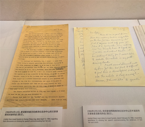宋庆龄和爱泼斯坦(昵称“艾培”)之间讨论起草文稿的往来书信,以及标注着“Last Copy”(最新版)或“Lastest Copy”(最最新版)的文稿,生动反映出她为纪念孙中山之际发表演讲所做的精心准备,也让人深刻体会到,纪念孙中山在她的生活中有多么重要。