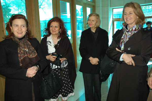 4月12日、14日下午,天气晴好,春风扑面,芬兰、挪威、瑞典、墨西哥、伊拉克、印度、波兰七国大使夫人兴致勃勃地来到宋庆龄故居,故居管理中心副主任陈红军对各位夫人的到来表示欢迎。大使夫人们参观了宋庆龄生平展展厅、原状陈列和庭院并欣然合影留念。芬兰大使夫人说自己正在阅读宋氏家族的传记,她对故居工作人员向她推荐的爱泼斯坦撰写的《宋庆龄传》很感兴趣,表示希望继续深入了解宋庆龄的事迹。波兰大使夫人看到当年宋庆龄接见波兰女王的照片,浮想联翩,驻足良久。印度大使夫人看到宋庆龄写信请人为孙中山买手套时还附上手形图案,发出了会心的微笑,她还仔细观看了柯棣华等当年印度援华医疗队成员的照片。故居的环境和氛围给大使夫人们留下深刻印象,她们在赏花时充满期待地说:“希望在海棠花盛开的时候还能再来。”
