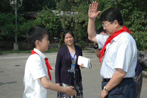 西城区教委主任田京生佩戴红领巾