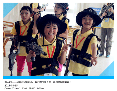 最值得一提的是,这是孩子们“自主管理”的夏令营,由老营员组成营委会,从出发前的物品准备直至南站结营,都是由营委会自主管理,老师从旁辅导。营委会成员第一天作为各小队小队长,负责将全体营员带至营地,从上火车开始带领队员设计队名、队旗、选择队歌,组织车上活动,第二天开始担任辅导员,负责引导各小队长开展日常活动和协助老师管理整个夏令营。还记得第一天开总结会时,公认的局面是“混乱”!因为这次高年级的营员和低年级的营员各占一半一半,小营员自律性较差,不服从管理,小队长们一大堆的告状与埋怨,“老师,XXX和XXX总是打架;老师XXX不听劝,我都和他说了,怎么劝都不听,我没办法了;老师您管管他们……”然而得到的回答是:这是你们自己的营,你们作为指导员,已经多次参加夏令营,知道营区纪律,你们自己去协调,去想办法解决问题,经过尝试实在没有办法时再来咨询老师。”第二天,就有两位小队长报告了他们的解决方案和处理结果,第三天取而代之的是总结时小队长们说:我们小队表现挺好很团结,出去没有掉队的同学!XXX今天表现很不错,没有打闹,还为积极为大家服务!第四天开始学习不总结流水账、变得的有条理了;第五天简洁的总结,火热的真人CS,优秀的篝火晚会策划,出色的主持,孩子们的笑声、木柴的噼啪声、马蹄的哒哒声、烟火的爆破声,在童园岛上空回荡……