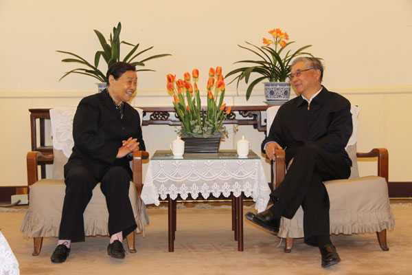 胡启立主席(右)会见河南宋庆龄基金会刘玉洁主席(左)