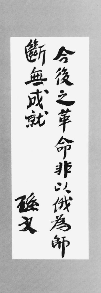 孙中山曾对西方国家抱有美好想法,也曾到英美去寻求民主政治的经验。但在经历了一次次挫折后,孙中山转向替劳苦大众谋出路的苏俄。他开始研究十月革命的经验和苏维埃政权的政策。当十月革命胜利的消息传到中国后,孙中山甚感兴奋,他致电列宁表示祝贺:“中国革命党对于贵国革命党的艰苦卓绝的奋斗表示极大的敬意;而且更希望中俄两国的革命党团结一致,共同奋斗!”自1920年秋以后,孙中山在上海相继会见了共产国际远东局使者维经斯基,共产国际代表马林,苏俄驻华特命全权代表越飞,还聘请苏联顾问鲍罗廷为国民党组织教练员、草拟国民党组织大纲。孙中山希望学习苏俄的建党建军经验,并为中国革命争取到了人力、物力、财力的支援。1924年1月20日,在国民党一大通过的宣言中,孙中山郑重提出了“联俄、联共、扶助农工”的三大政策。在苏联及中国共产党的帮助下,1924年6月16日,黄埔军校正式创立。展览展出的同年10月9日孙中山的题词:“今后之革命非以俄为师断无成就”,表达了他的肺腑之声。