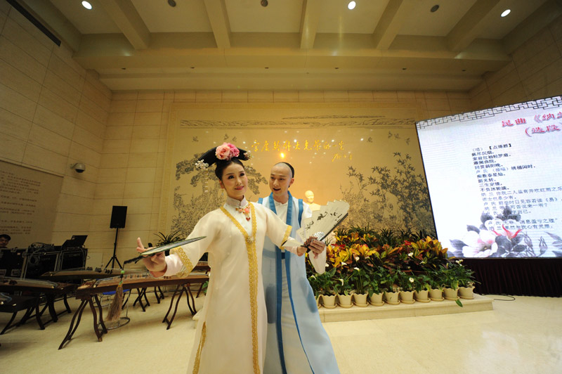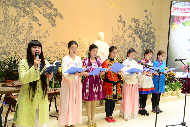 纳兰文化研究中心主任刘子菲和6位女大学生表演了纳兰词吟诵《海棠春》,为文化节增添诗情画意,令人回忆起纳兰性德在庭院中邀请文人墨客吟诗作赋的情景。