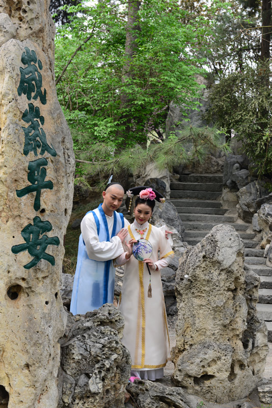 300多年前,清康熙年间大学士纳兰明珠之子、“清代第一词人”纳兰性德曾在这座王府花园中生活,留下许多脍炙人口的诗词,昆曲《纳兰》唱词吸取了纳兰词精华。在“点绛唇”中,纳兰公子和其妻卢氏唱道:“爇尽沉烟,案前红袖轻罗扇。雕阑曲院,同赏斜阳晚。绣榻闲时,痴数春星灿。韶光转,三生定缘,不负冰轮满。”加上人物扮相三分传统、七分时尚,十分符合人物气质和性格特点,使纳兰公子超凡脱俗的品格和遗世独立的风骨给人留下深刻印象。纳兰和卢氏扮演者还在海棠花下、南楼前等故居各处美景前拍照留念,让人有时光穿越之感。