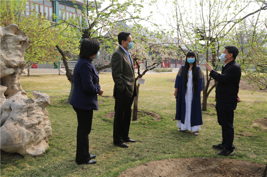 正值宋庆龄故居古西府海棠花开时节,3月31日上午,中国宋庆龄基金会副主席于群在故居会见北京市文物局局长陈名杰,查看宋庆龄故居疫情防控情况,探讨交流故居文物保护工作。