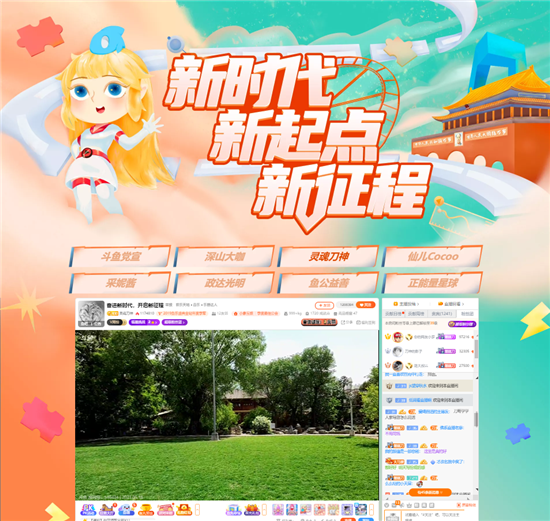 5月18日下午,在斗鱼直播分享网站上,四个网络直播间面向300多万粉丝进行视频直播。本次直播是《奋进新时代 开启新征程——斗鱼庆祝建党100周年》北京站直播活动,由斗鱼主播在宋庆龄故居工作人员带领下参观故居庭院,参观宋庆龄生平展和原状陈列。斗鱼高人气主播纷纷登场,有“网红党支部”成员深山大咖、2019年度十大主播之一灵魂刀神、颜值分区头部主播仙儿coco、二次元分区新秀主播采妮酱等。Z世代青年人直播风格清新,备受网友欢迎。“伟大女性、慈爱祖母”“想去宋奶奶故居荡秋千!”“讲文明,树新风,灵魂刀神往前冲!太正能量了”等等,从快速滚动的弹幕,可以看到互动热烈,主播还亲切地对粉丝说:“宝宝们写份观后感!”