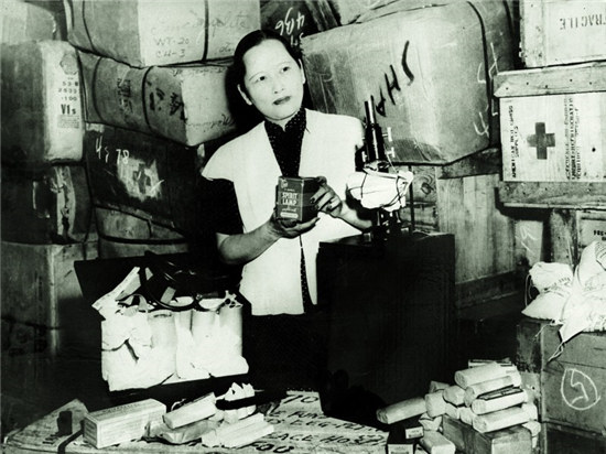 1948年,宋庆龄在检查运往解放区的医药器材。为了保证医药物资无损地运到解放区,宋庆龄经常亲自检查药品包装。
