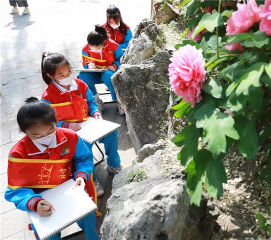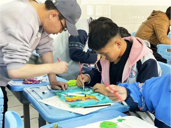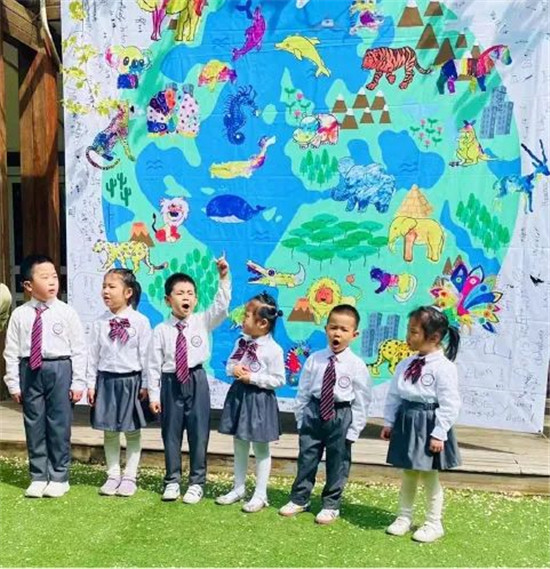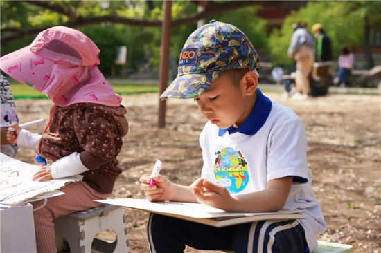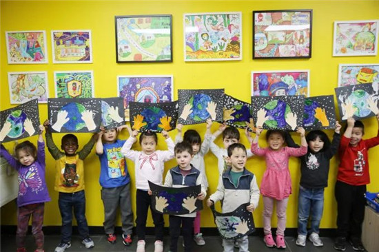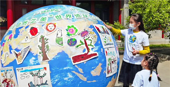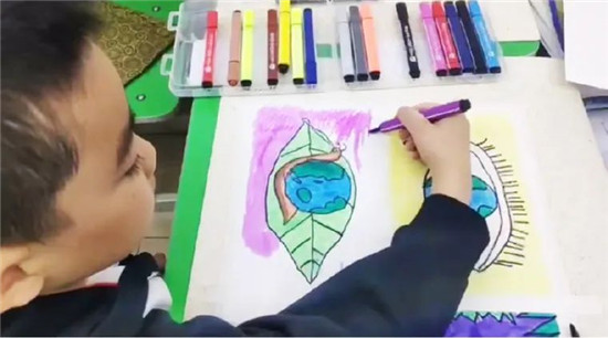 孩子们在志愿者美术老师的指导下进行了大自然写生,并用自己的作品装点“地球”。