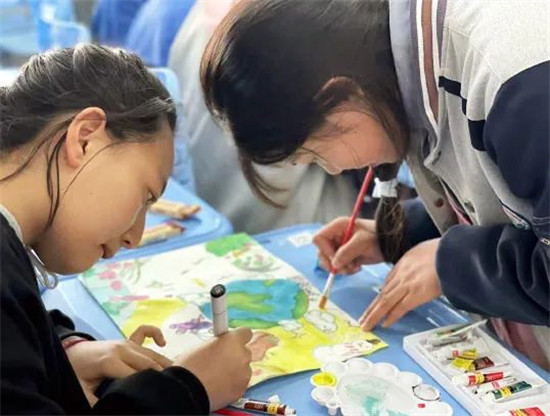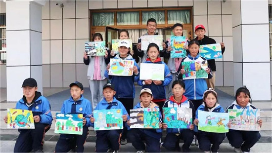 青海玉树分会场的同学们在绘画“心中的地球”。