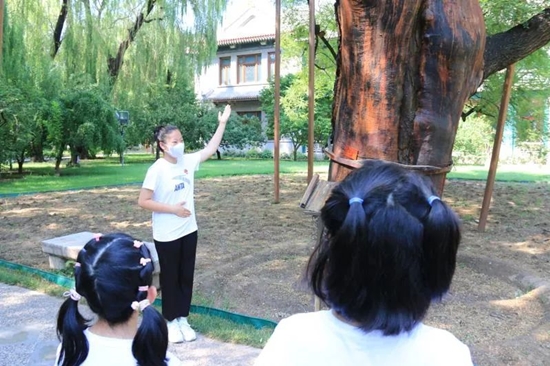 在主楼和庭院中,他们分成小队,用中英双语展示夏令营所学知识技能,讲述宋奶奶的生平事迹和故居的前世今生,仪态落落大方,发音字正腔圆,引得大家纷纷点赞。