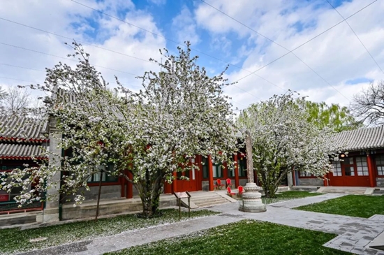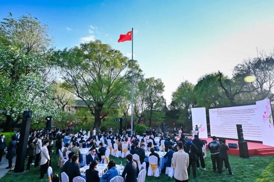 四月的北京,草长莺飞,姹紫嫣红。宋庆龄故居的两株古西府海棠群苞绽放,古朴雄浑。4月6日下午,2023年海棠文化节开幕式暨海棠诗会在故居成功举办。第十三届全国政协副主席、中国宋庆龄基金会主席李斌出席并宣布文化节开幕,与中外嘉宾一起为“西府海棠图”点上金色花蕊,共同放飞和平鸽,观看文艺演出,并合影留念。