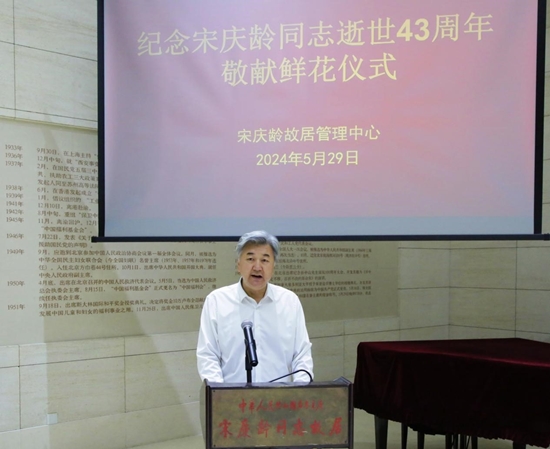 2024年5月29日,是中华人民共和国的缔造者之一、中华人民共和国名誉主席宋庆龄同志逝世43周年。宋庆龄故居管理中心举行庄重的敬献花篮仪式。中国宋庆龄基金会副秘书长、宋庆龄故居管理中心主任李安晋主持仪式,并带领大家向宋庆龄汉白玉雕像三鞠躬。