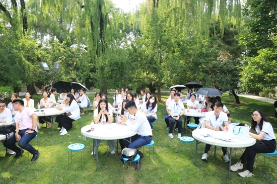 在大草坪上,京港两地大学生进行了活泼生动的交流。香港中文大学的黄晴炜同学表示,在北京期间学习了很多历史及文博知识,了解了很多北京民俗,尤其是在宋庆龄故居实习,这里保留着珍贵的历史记忆,是我们鉴古知今、读史明智的好地方。北京师范大学的刘雪纯同学分享了自己在故居志愿服务的感受,宋庆龄曾经在香港为中国抗战胜利、为世界反法西斯战争的胜利作出了特殊贡献,和香港同学共同学习这段历史,今天有了更多切身体会。