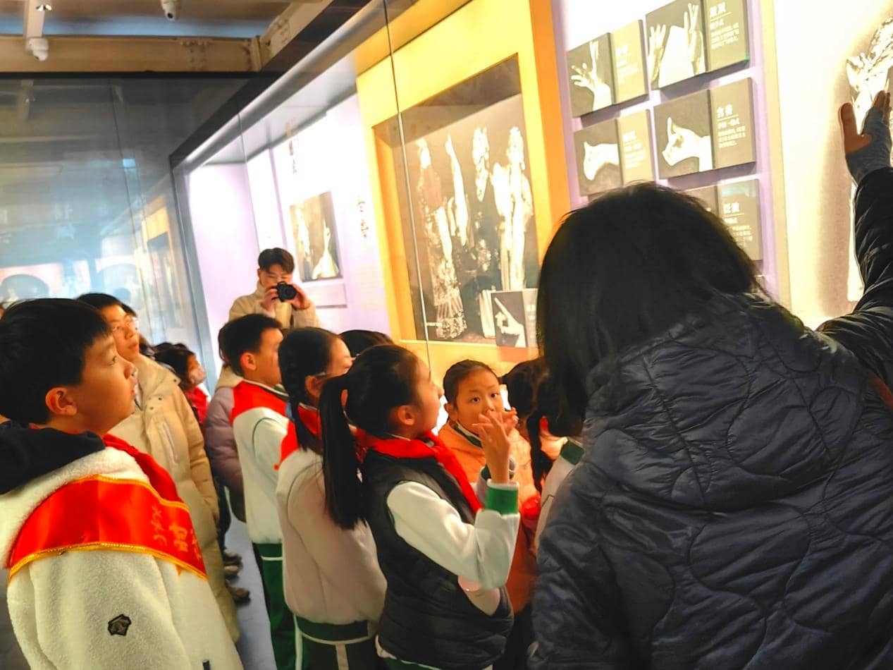 活动在小讲解员的志愿讲解、小京剧家的精彩表演中开始。在讲解老师的带领下,时代小先生们参观“九畹华姿--梅兰芳戏曲表演手势展”。